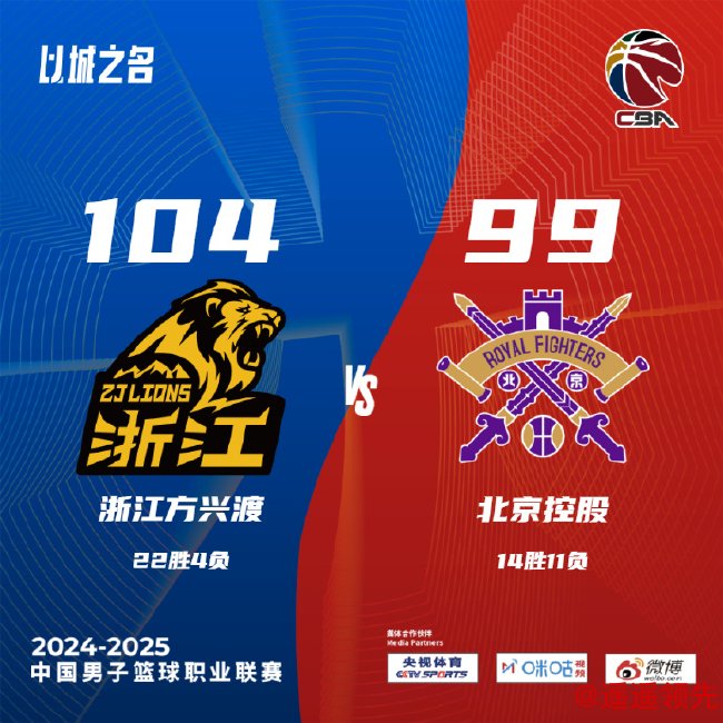 北京时间1月4日消息,2024-2025赛季CBA常规赛第26轮,浙江广厦104-99击败北控男篮。